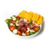 Ruccola, madársaláta, kesudió, nachos, koktélparadicsom, mozzarella, vörös áfonya, fekete erdei sonka, fokhagymás öntet