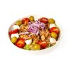 150g gyros hús, ruccola, koktélparadicsom, saláta, lilahagyma, olivabogyó, mozzarella)